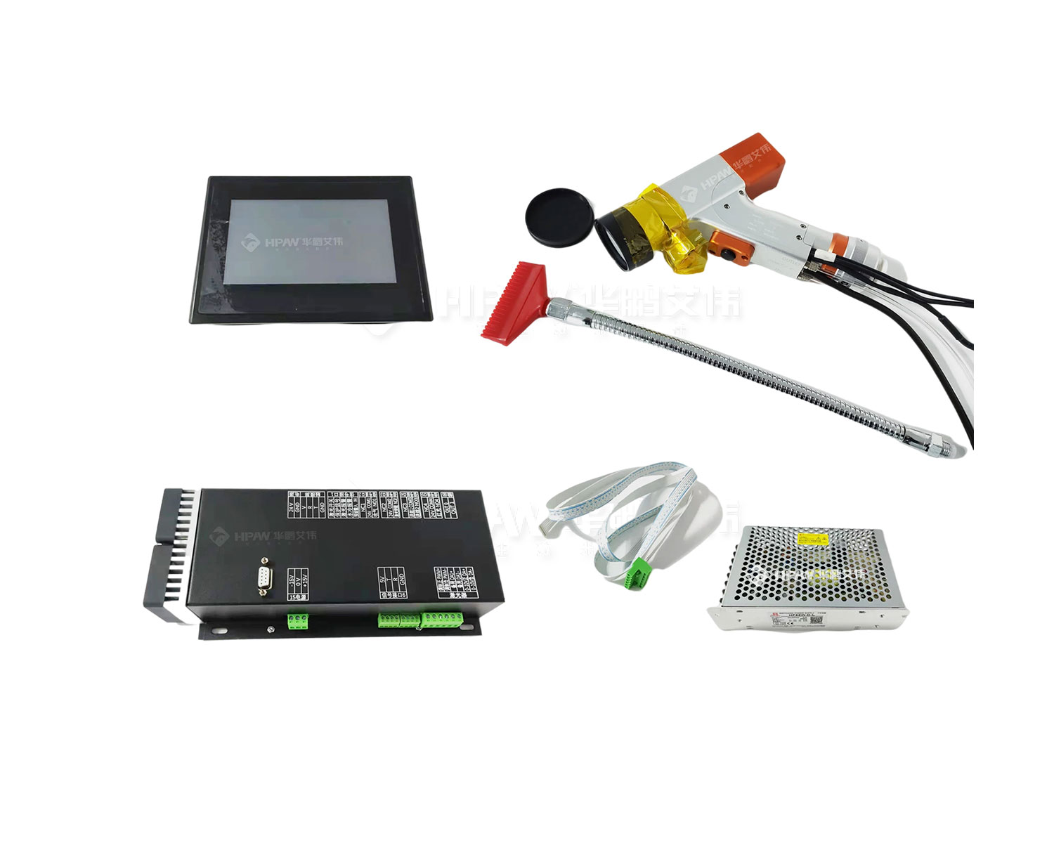 本款QBH手持擺動清洗頭由光纖手持清洗頭、驅動控制器、觸摸屏、電源及連接線組成,型號為HPCL100ASC,由深圳市華鵬艾偉提供技術支持,適用于市面上大部分手持激光焊接。